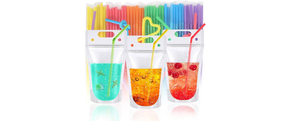 - Flat pouches with straw holes